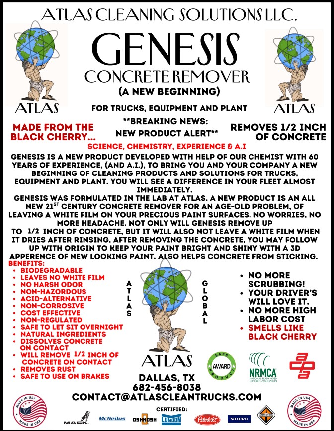 - Designed for use on Ready Mix Trucks, Gunite Trucks, Pump Trucks, equipment, concrete saws, pavers, molds, curb machines, tools, tankers, and forms, GENESIS delivers industrial-strength cleaning power.